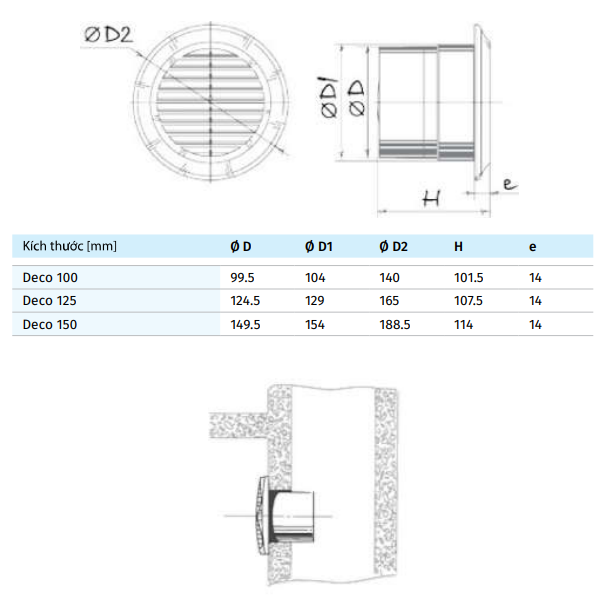 Quạt hướng trục gắn tường – gắn trần DECO 150