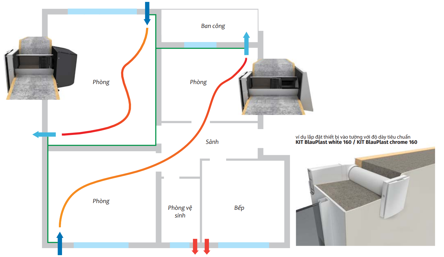 Quạt cấp khí tươi hồi nhiệt Blauberg giúp làm sạch không khí và hút khí thải ra ngoài
