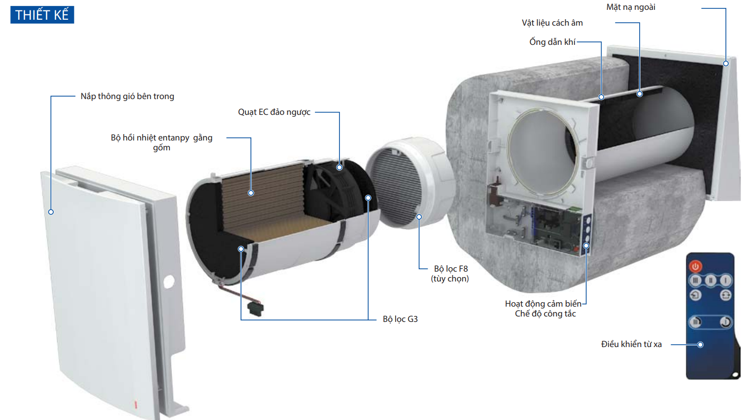 Bộ thu hồi nhiệt của quạt giúp giảm thiểu tổn thất nhiệt do sự thông gió. Sự trao đổi không khí có thể kiểm soát tạo ra một môi trường trong sạch.